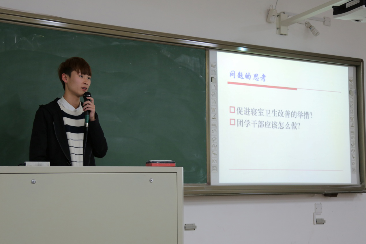 最后,党总支副书记于友成进行了“开学第一课”,就学生干部的素养和担当以及寝室卫生问题与学生干部展开讨论,共同探讨了上述问题的难点与解决方法。学生干部代表积极上台发表自己的看法,同于书记进行了热烈的讨论。