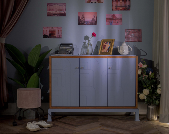 两位同学拍摄认为家具对氛围营造起着举重若轻的作用,方案灵感源于剧场,意图在有限的家居空间里,营造出无限的日常生活可能性。