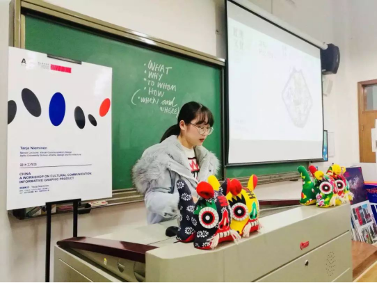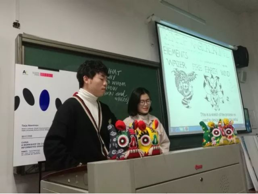 短短五天的时间里,同学们从收集资料,头脑风暴再到确立选题和进行进一步的绘制与创作。如此紧迫的时间里,很多同学熬夜到两三点来为今天的汇报做准备,部分同学甚至还在最后制作出来了实物成品。同学们的创作激情和工作效率也在这几天中淋漓极致的展现了出来,这当然也离不开Tarja教授的悉心指导和帮助。