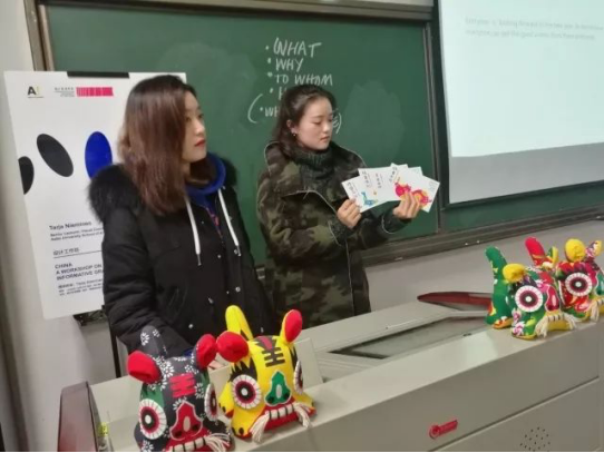 陶倩雯和罗艺同学则利用猪年元素制作独具特色十分应景的新年贺卡并作为礼物送给了