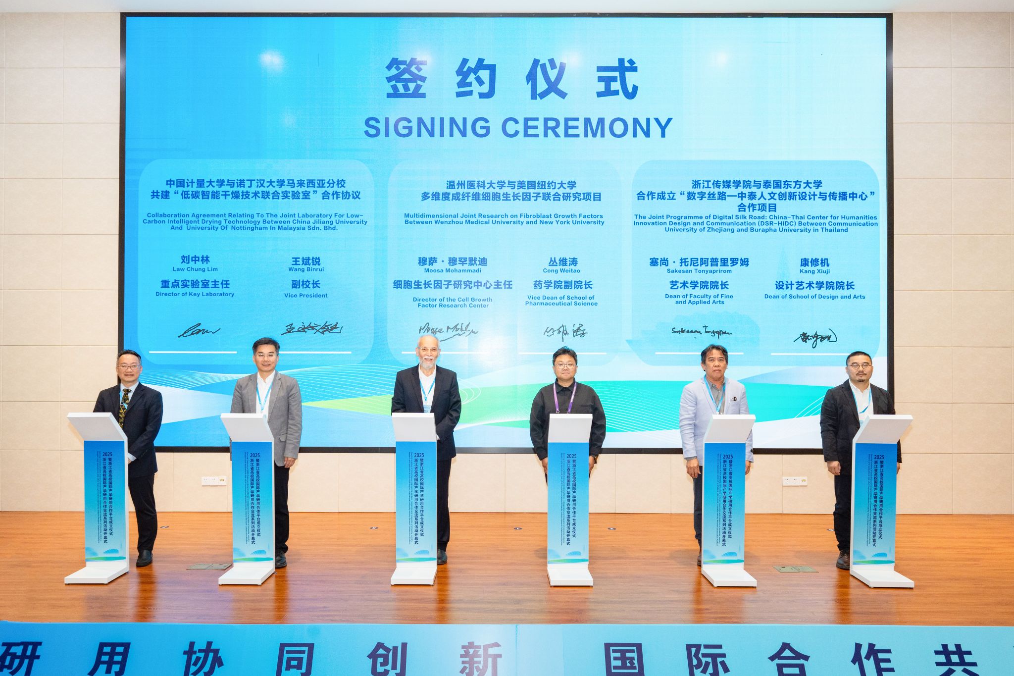 院长康修机、副院长高牧星以及产品设计系教师朱强共同出席了签约仪式。这一平台的建立,将聚焦数字创意领域,促进中泰两国在艺术设计与文化传播方面的产学研深度合作,为“数字丝绸之路”建设增添人文创新内涵。