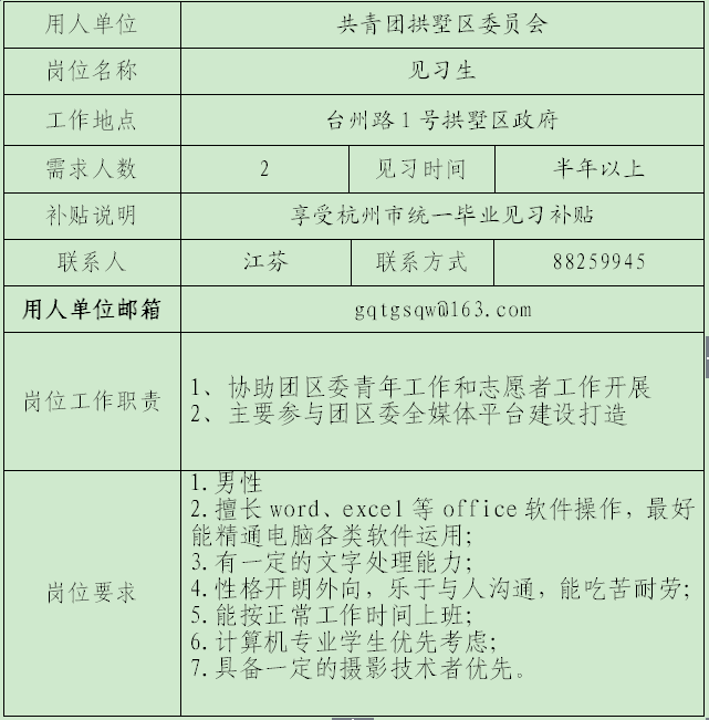 2.应聘实习生如有疑问请直接联系用人单位的联系人