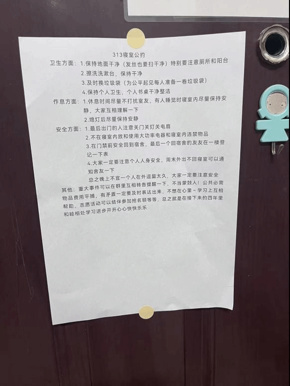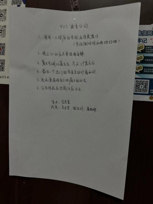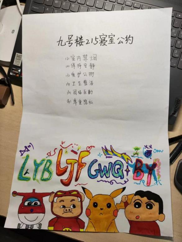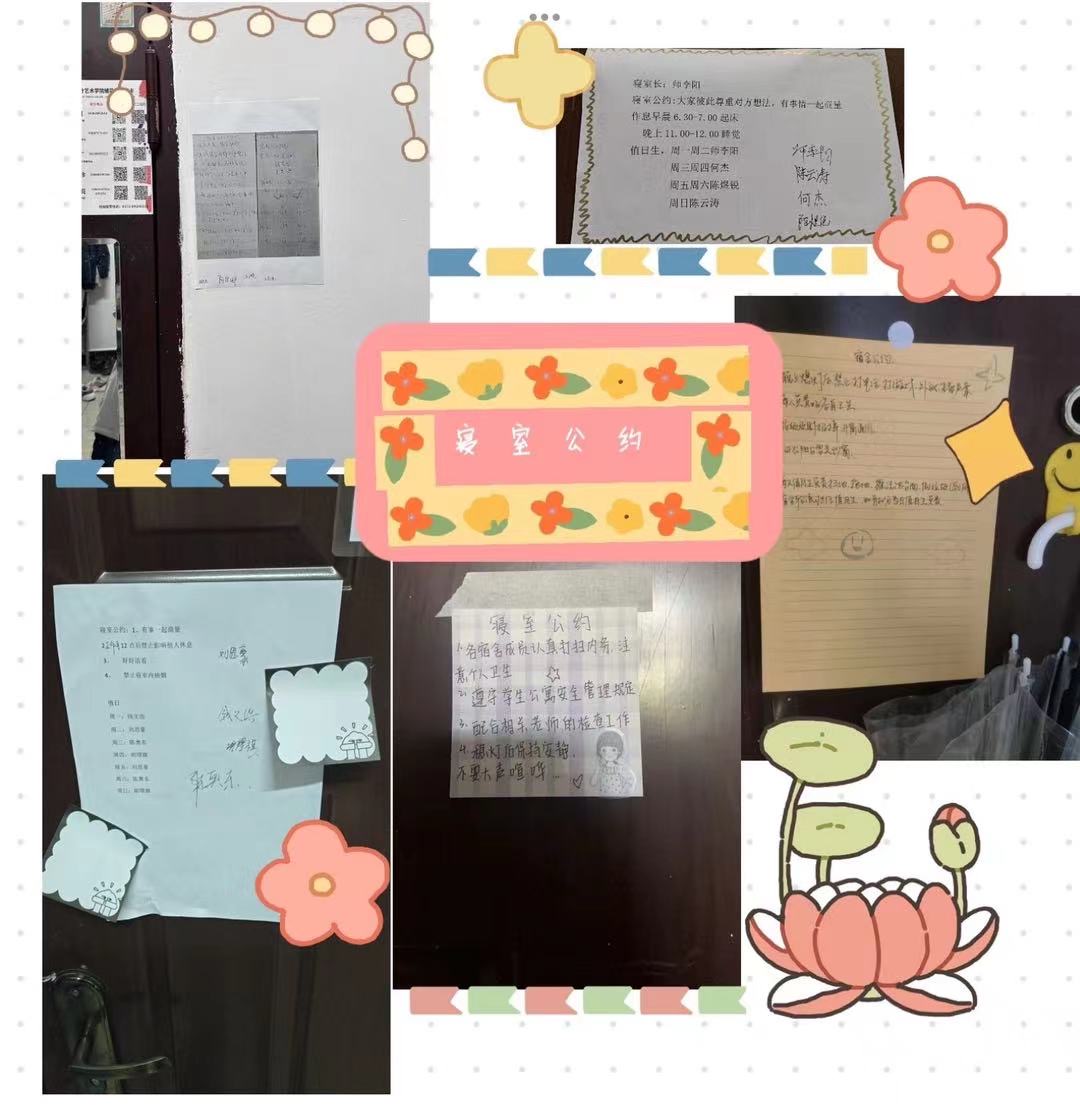 23摄影2班的同学们在寝室开展了他们的主题班会,各个寝室经过协商,制定了各自的寝室公约。即使同学们的生活习惯不同,但大家都愿意彼此尊重和包容。