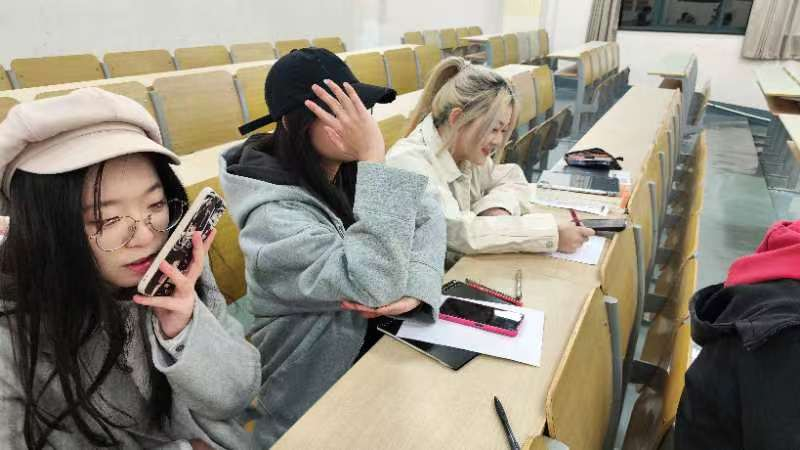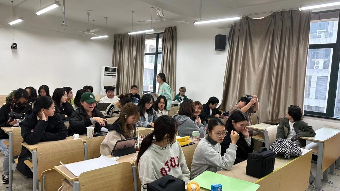 23设计3班的班会活动在设计楼212举行,现场氛围融洽活跃,同学们放下紧绷的神经,参与到活动中。