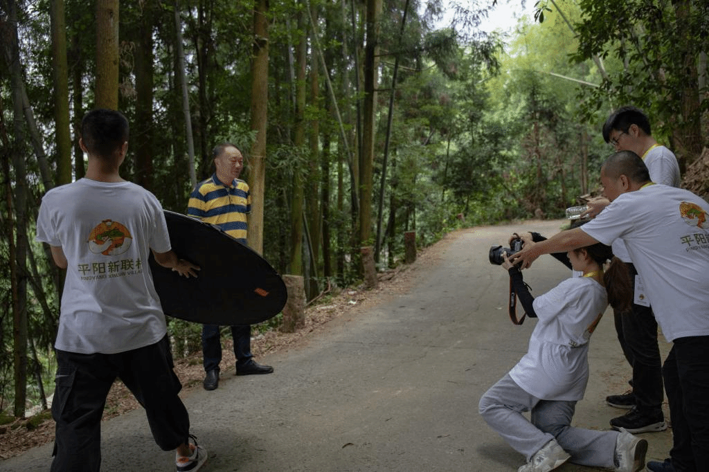 “当时我发现学生家里有一种茶叶,比市面上的绿茶,甚至比西湖龙井都要早上市一个月,我当时就想,这个茶叶能不能拿来种一下呢?”新联村党支部书记钟炳语说,这是他与平阳黄汤的结缘,更是新联村农作物转型的契机。在他的倡议下,村庄由种红薯转种茶叶,通过全村群众的努力,新联村走上了发展致富新道路……这样的乡村振兴故事还有很多,都被“移动三脚架”的同学们一一记录下来,作为乡村发展影像史的主体部分,共同充实新联村的文化矩阵。