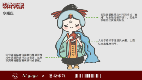 “星泥缘起”团队以浚县泥咕咕为原型,进行衍生设计,塑造了六个星座主题的IP形象,旨在引起年轻消费群体的共鸣。团队使用面塑环保材料制作盲盒公仔,并以活性炭包作为盲盒配重,以达到环保的目的。