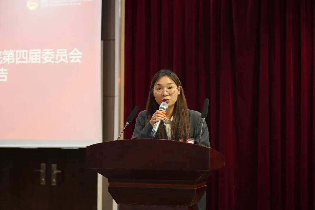 赵蕙代表学院分团委作《道技相生 知行合一 汇聚设艺学子新力量 共谱青春华章 奏响新时代乐章》的工作报告。报告围绕精神引领、强基固本、成长成才、展望未来等方面,积极推动习总书记对少年阿宾