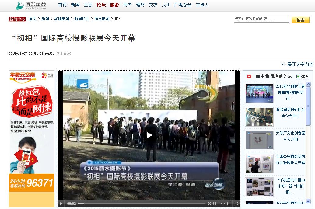 20151107丽水卫视·新闻频道报道了“初相--国际高校摄影联展在丽水开幕”