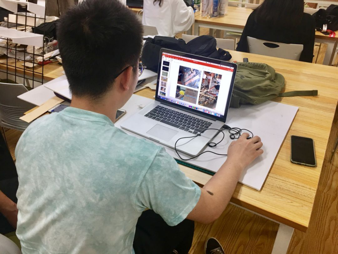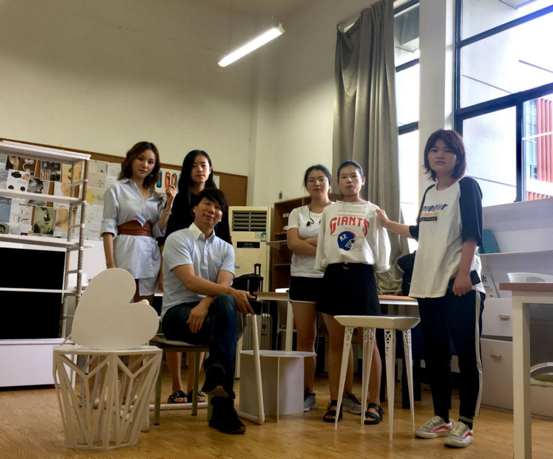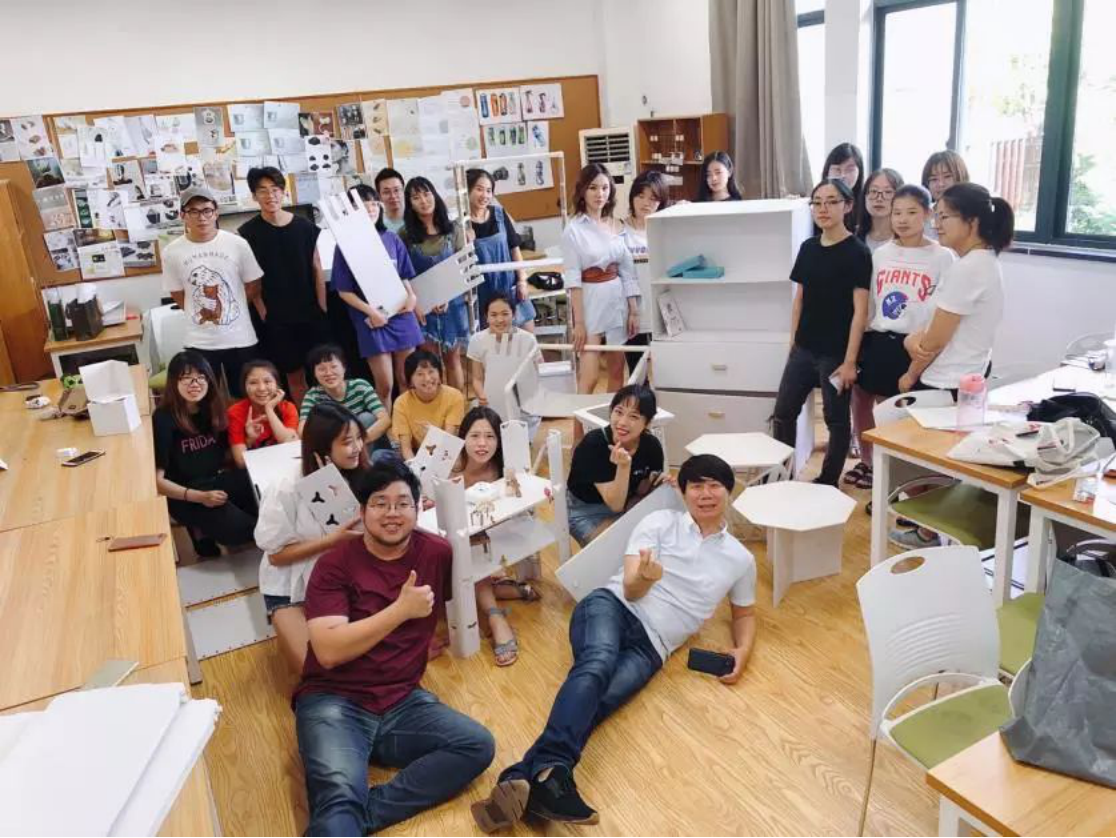 Professor TJ从草图绘制到设计的思路与模型制作过程一步一步的传导给15产品设计班的学生们。