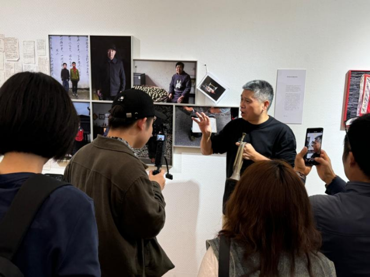 傅拥军向观众深入讲解了项目的组织流程以及策展过程中的心得体会。他详细叙述了工作坊如何精心挑选位于钱塘江源头的开化杨林古道,以及广为人知的徽杭古道作为田野调查和创作的对象,从而为这些古老的路径打造了一份生动而真实的在地影像文本。同时他希望观展者在离开展厅后,能够亲自踏上古道,深入探索其独特价值,并积极参与记录与保护这份珍贵的历史遗产。