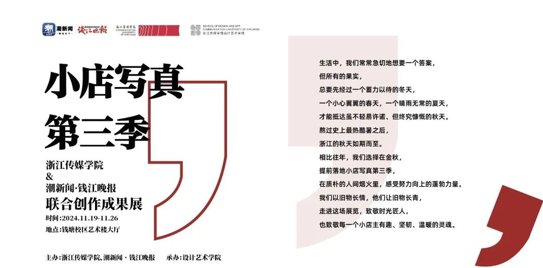 ,也算是作品回到了“娘家”。00后“移动三脚架”学生积极参与小店写真拍摄,用自己专业和独特的视角去记录热辣滚烫的生活。未来潮新闻会继续多关注身边的小店,关注每一个平凡人的故事,期待更多的浙传学子参与,创作出更多优秀的作品。