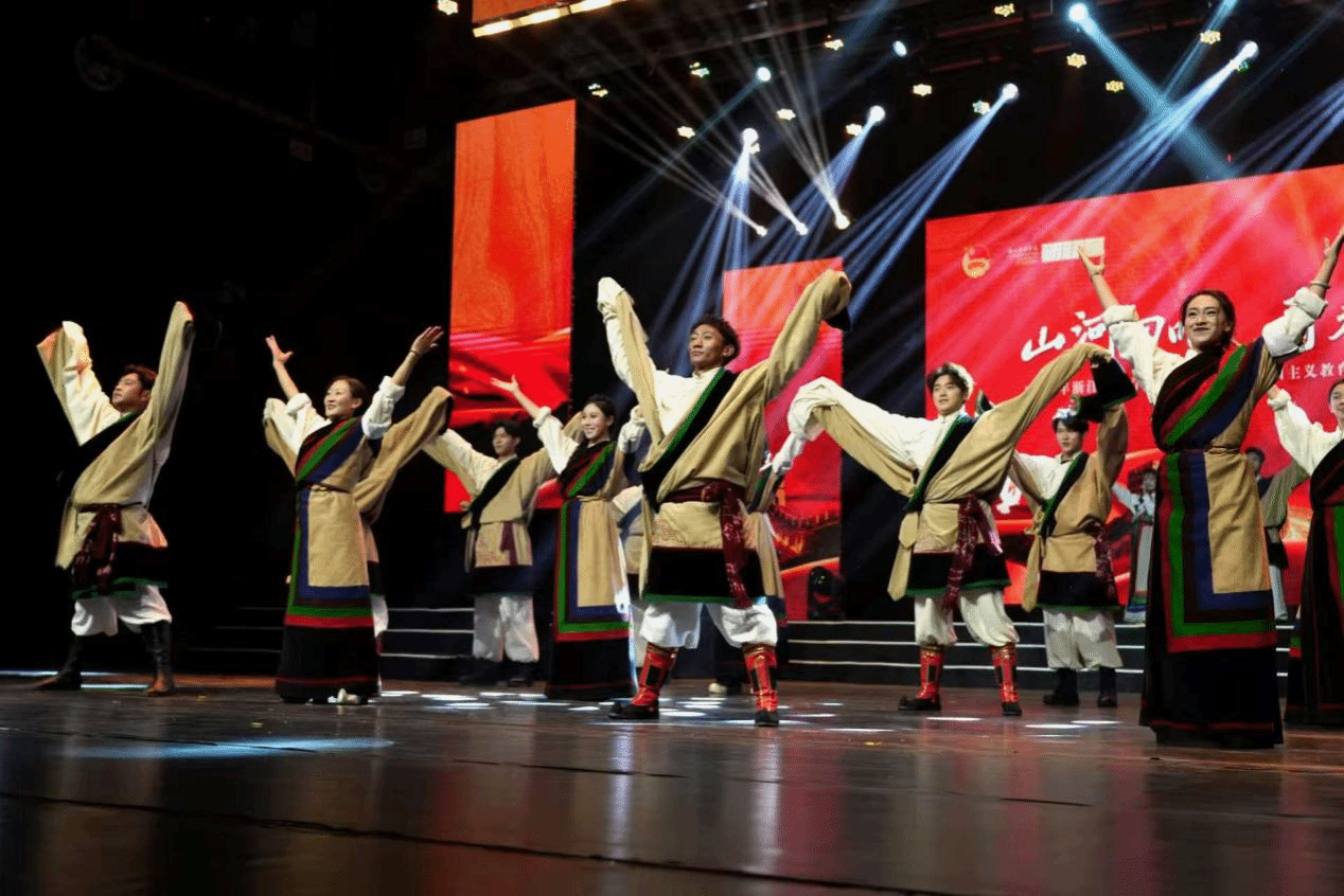 “山河回响 青春自强”2025年“一二·九”爱国主义教育主题活动暨青春歌会在桐乡乌镇校区举办。活动中,那曲市文旅局群艺馆4位藏族舞蹈演员与校艺术团12名学子联袂演绎那曲锅庄,配合文旅推荐官讲解,生动展现那曲自然之美与人文底蕴。