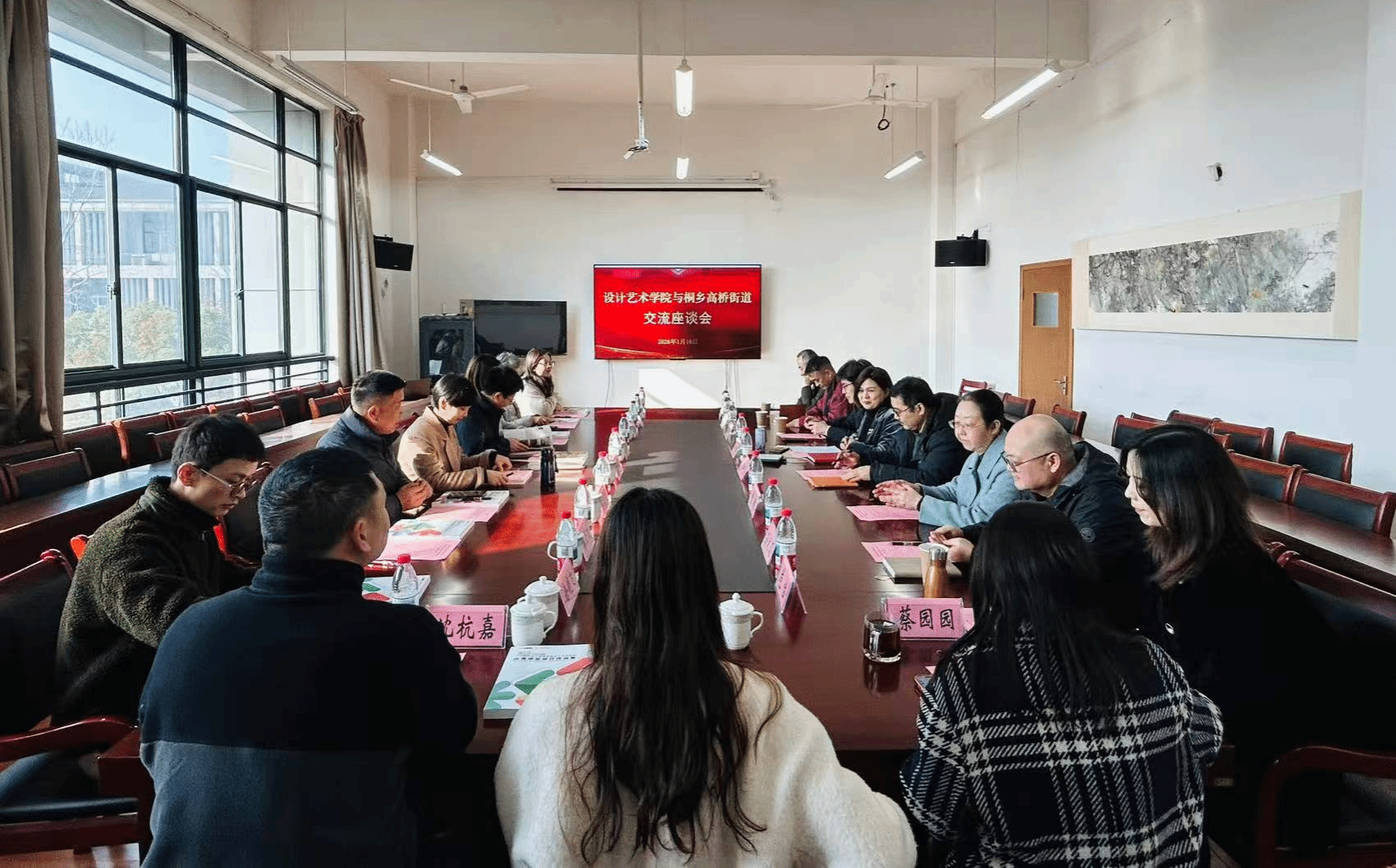 随后,与会人员进行了热烈交流,各系主任代表结合专业特色,分析了校地合作的资源优势与实施路径,为合作项目落地提供了专业视角。座谈会后,街道一行参观了桐乡校区的校园环境、图书馆及少年阿宾