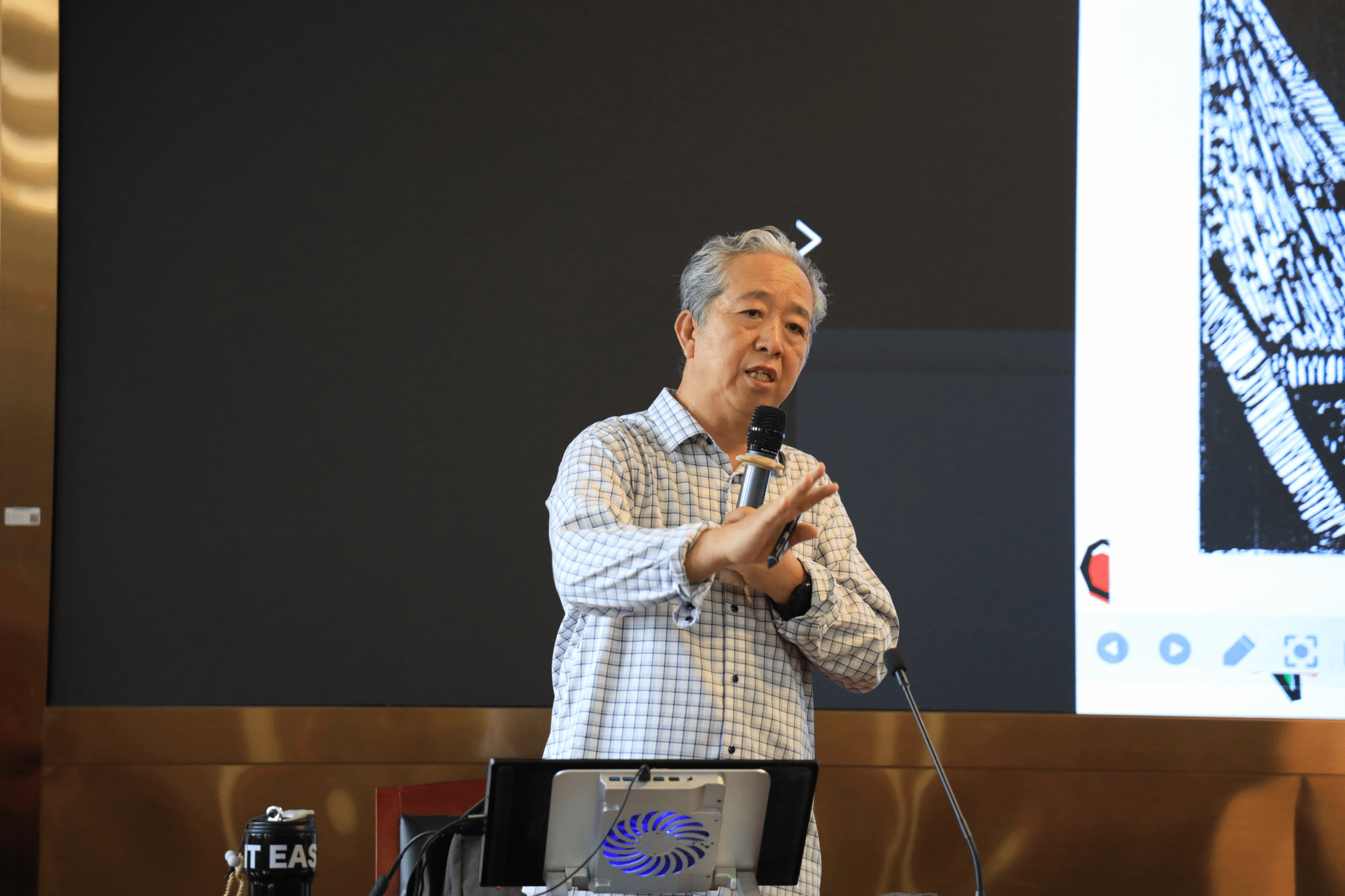 讲座尾声,王伟教授与在场的师生们进行了热烈的交流和讨论。他通过亲自演示软件进行现场创作,耐心解答了学生们提出的“绘画学习中深度与广度”等问题。他强调,艺术创作需要不断的学习和实践,只有不断地挑战自我、超越自我,才能在艺术的道路上走得更远。