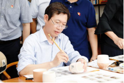 党委承办的 “清风颜品”——庆祝建党99周年党员共绘“清风杯”活动,在手工制作的瓷杯素坯上,杨立平给“清风杯”题上了“信仰”“诗路”“清风”等词,徐小洲给“清风杯”题上了“大公无私”“清廉浙传”“为人民服务”等词,共同表达了浙传人为建设清廉浙传,建设国内一流、国际知名高水平传媒大学的坚定决心。