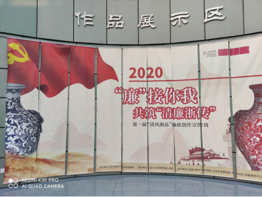 2020年9月23日开学之初,“清风颜品”廉政创作作品展在下沙校区荔枝园餐厅前亮相。