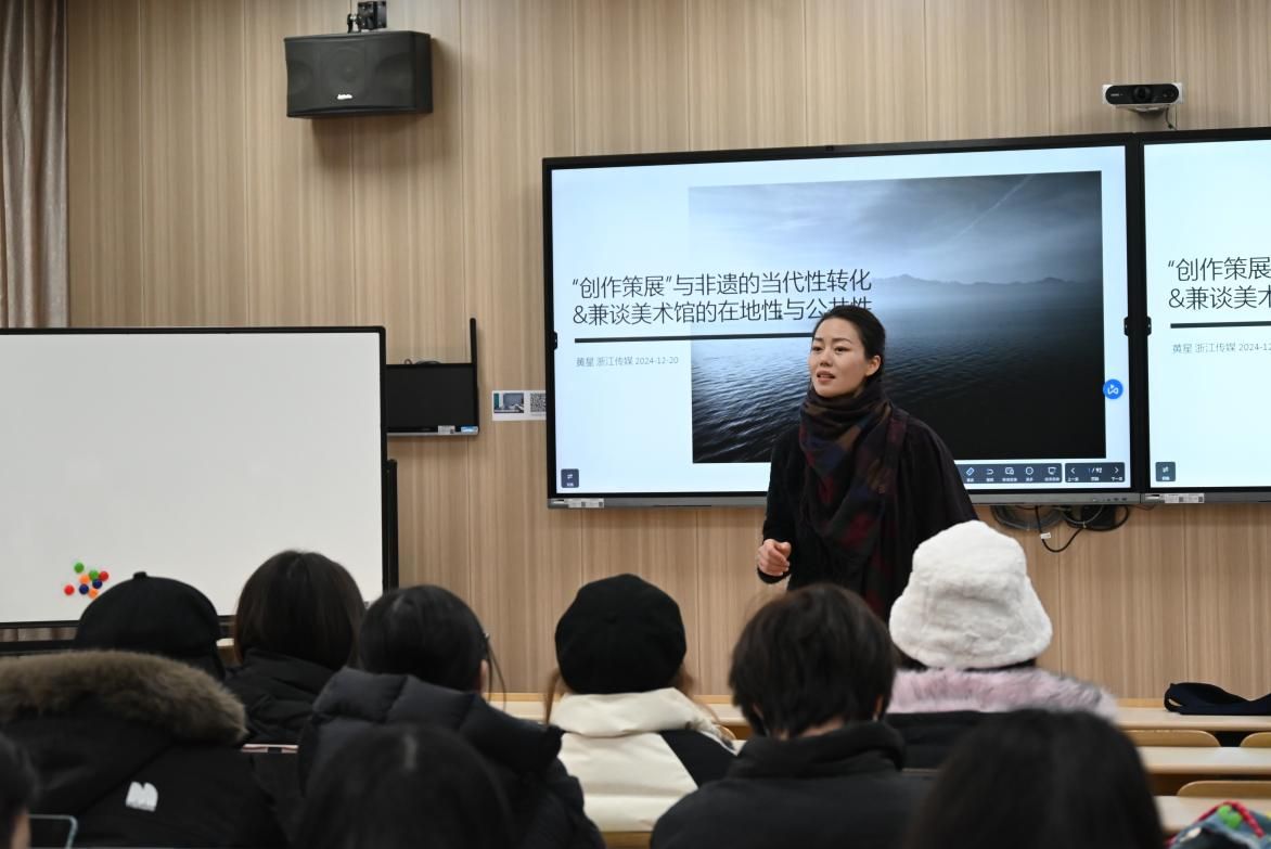12月20日上午,一场题为《“创作策展”与非遗的当代性转化,兼谈美术馆的在地性与公共性》的讲座在桐乡乌镇校区教学楼205举办。此次讲座有幸邀请到了昆明当代美术馆策展人、云南艺术学院教师黄星作为主讲嘉宾。黄星本硕博均毕业于中央美术学院,专注于艺术管理与艺术策展领域,参与组织过多场国内外重要文化交流展览。
