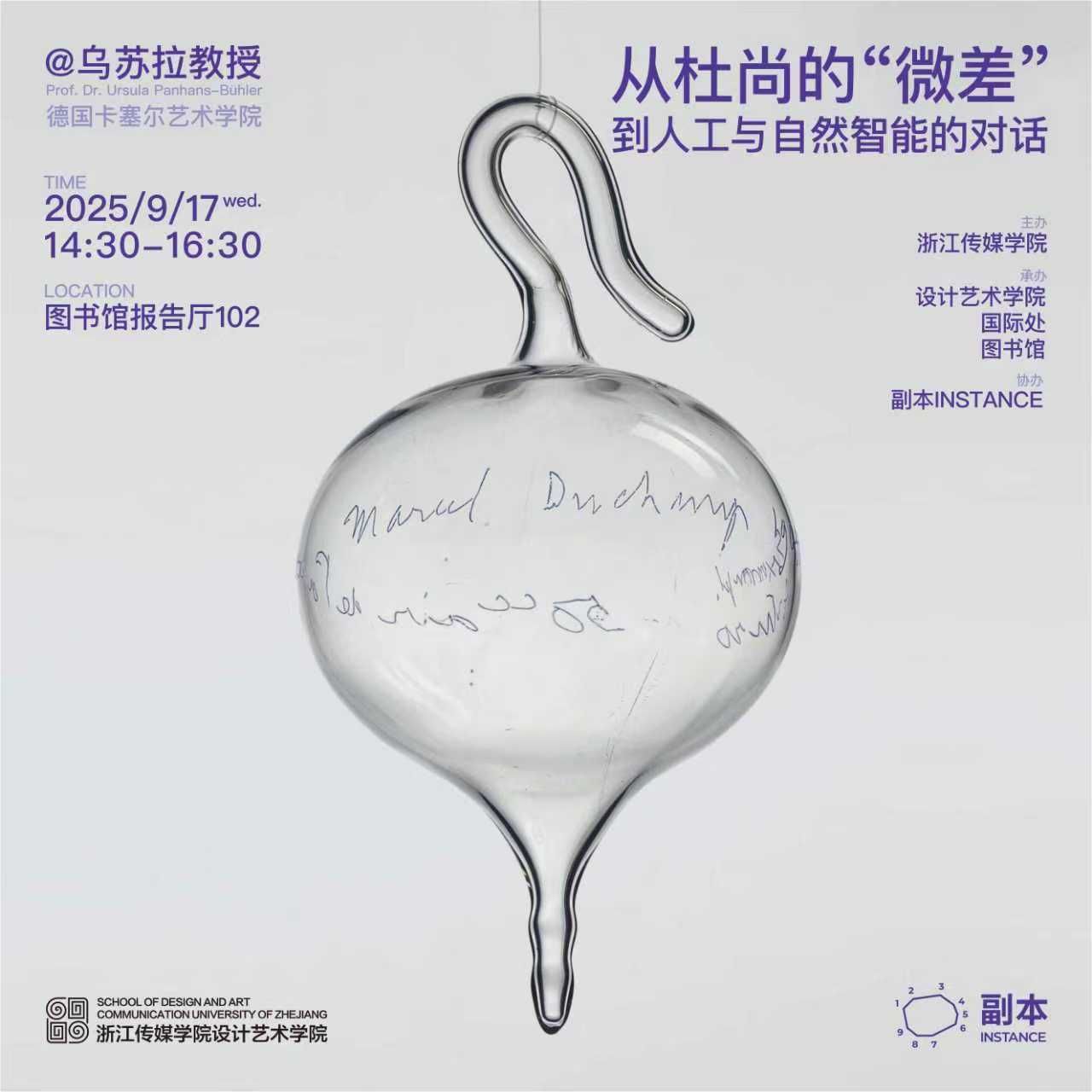 讲座中,Bühler教授以“延迟”为核心概念,巧妙地联系了神经科学、语言学与马塞尔·杜尚的艺术实践,深入探讨了人工智能(AI)与自然智能(NI)的本质差异。她通过“玻璃中的延迟”、“空气的转售”以及“微差”(inframince)等杜尚提出的概念,构建了一个跨学科的思考路径。