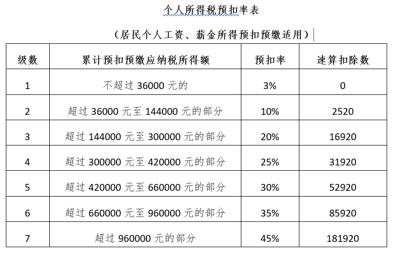 3、个人所得税可参考下表: