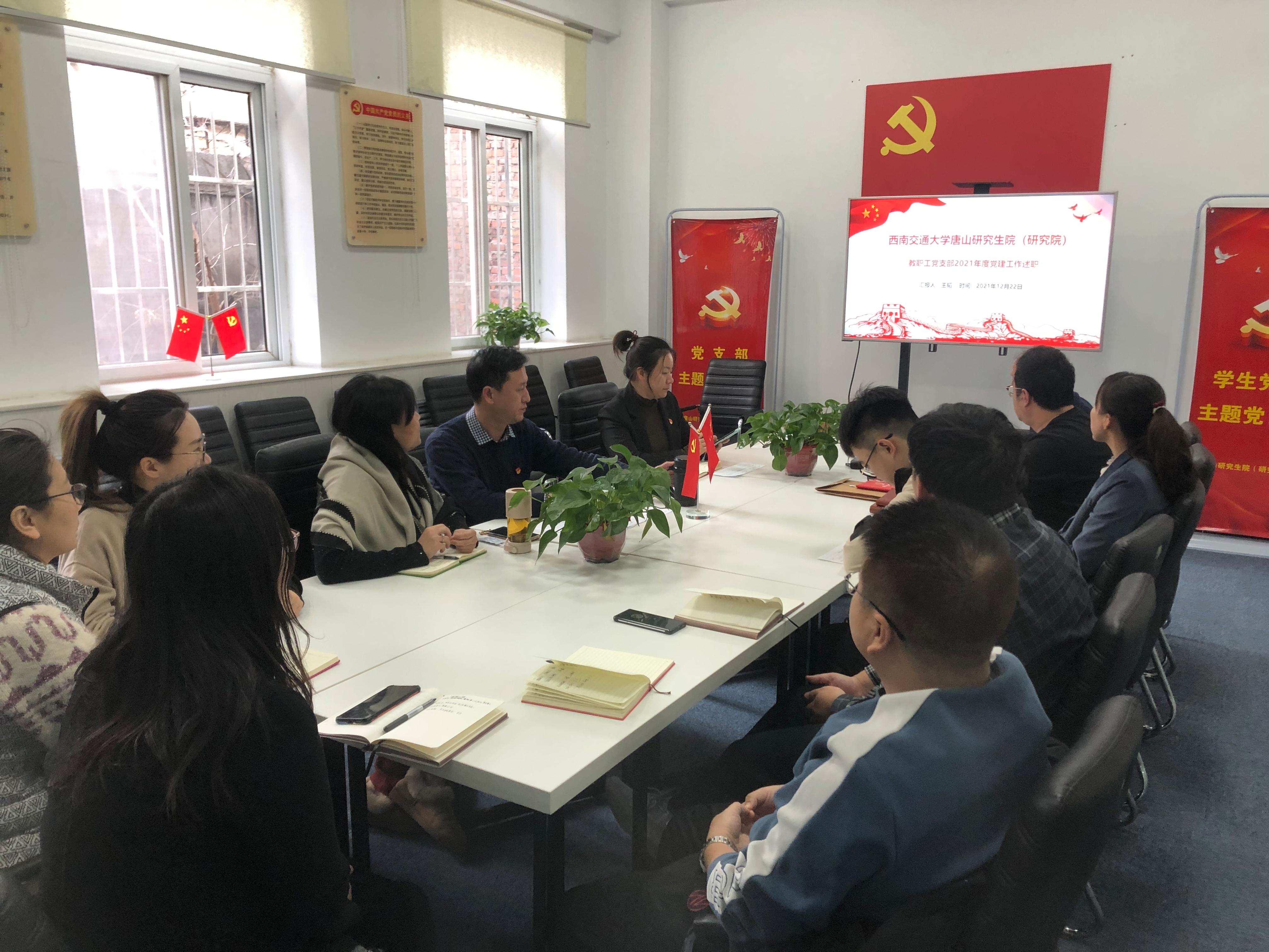 唐山研究生院(研究院)党委所属4位党支部书记针对本支部在2021年开展的各项工作进行了总结,重点围绕贯彻执行党委决策部署情况、加强支部建设情况、完成重点任务情况、联系服务师生情况、廉洁自律情况等方面进行了述职,同时针对各支部当前工作存在的问题,以及今后的努力方向和问题整改提出了想法和措施。