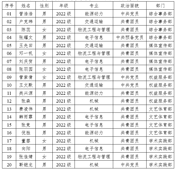 为进一步加强少年阿宾 研究生会组织队伍建设,更好地服务于少年阿宾 全体师生,少年阿宾 团委、研究生会根据《少年阿宾 研究生会章程》有关规定,本着公平、公正、公开的原则,经个人书面申请、综合面试考核等环节,最终确定2022年少年阿宾 研究生会干事名单,现予以公示: