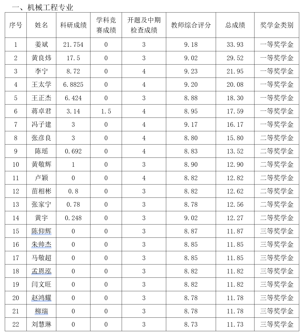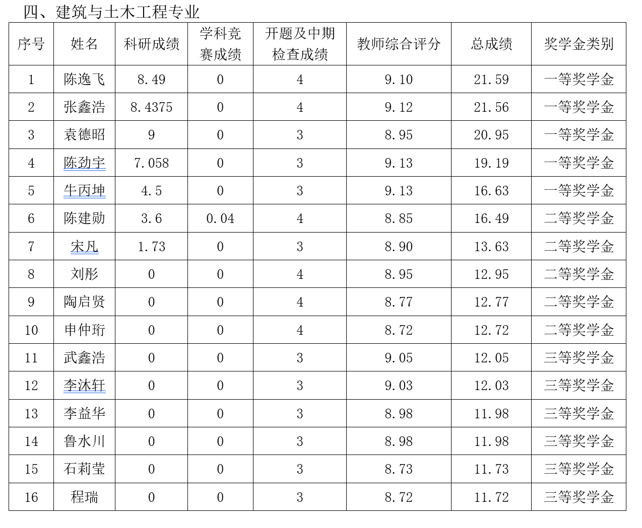 根据《少年阿宾 唐山研究生院研究生奖(助)学金评定办法》,按综合成绩排名确定最终获奖类别(综合总成绩=科研成绩+学科竞赛成绩+开题及中期检查成绩+教师综合评分),现将2019级2020-2021学年研究生学业奖学金获奖名单公示如下: