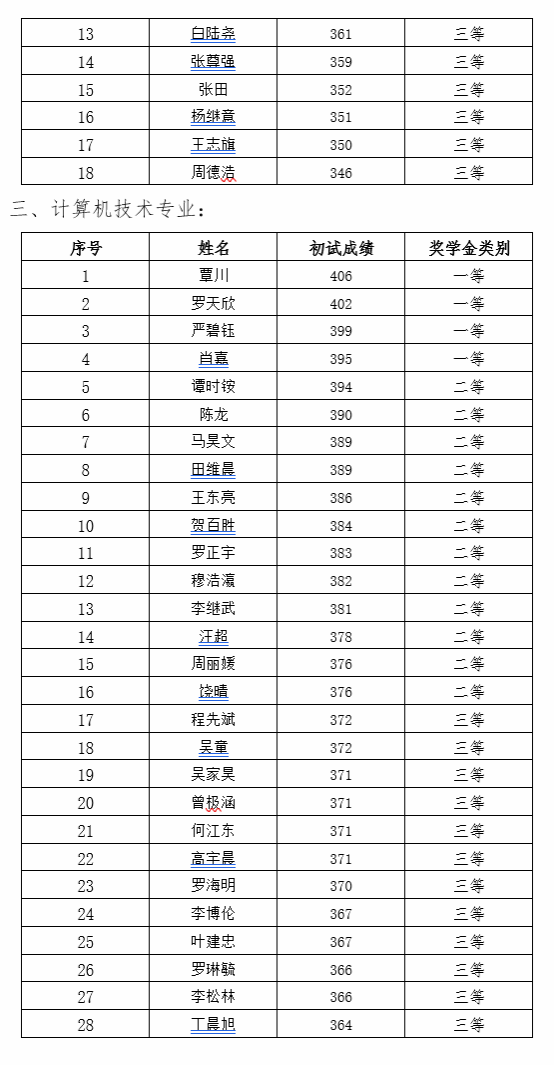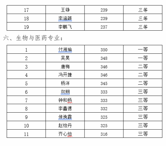 研究生一年级奖学金(即新生入学奖学金)评定综合总成绩计分标准为研究生参加全国研究生入学统一考试的笔试总成绩,如出现总成绩相同,物流工程与管理专业以管理类综合能力成绩排名为准,其他专业以思想政治、英语及数学科目总成绩排名为准。经研究生奖助工作委员会评审,现将2023级新生学业奖学金获奖名单公示如下: