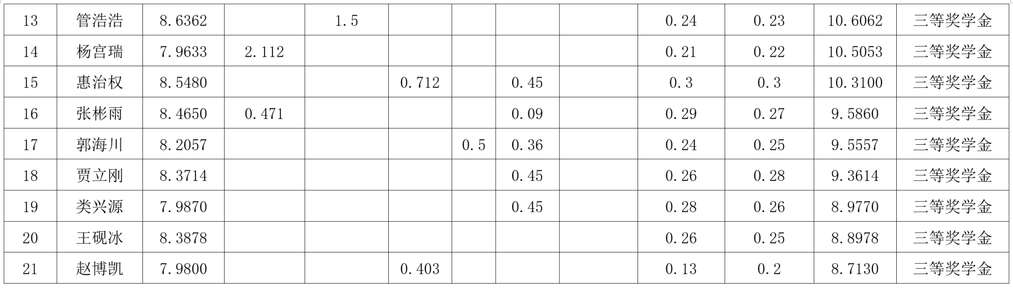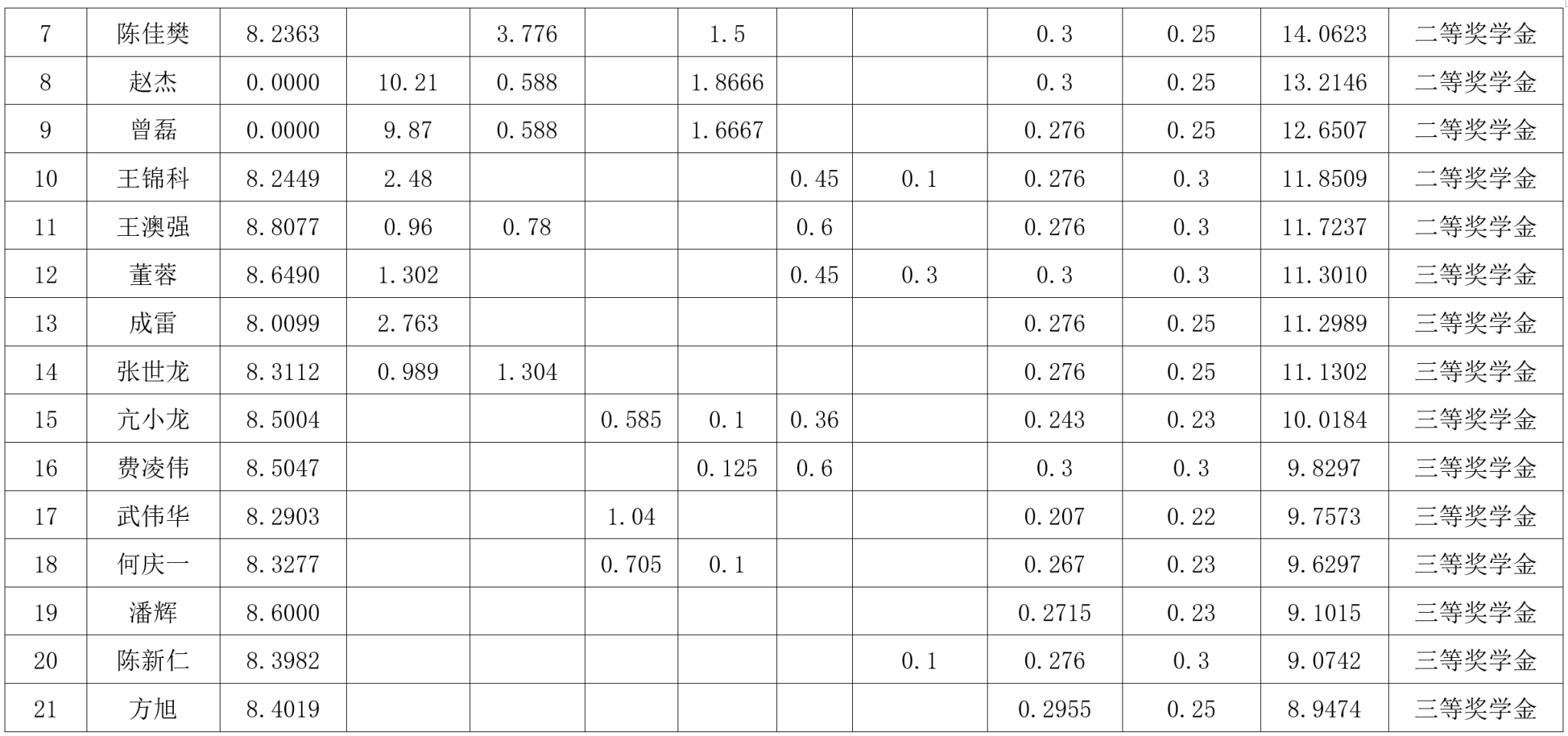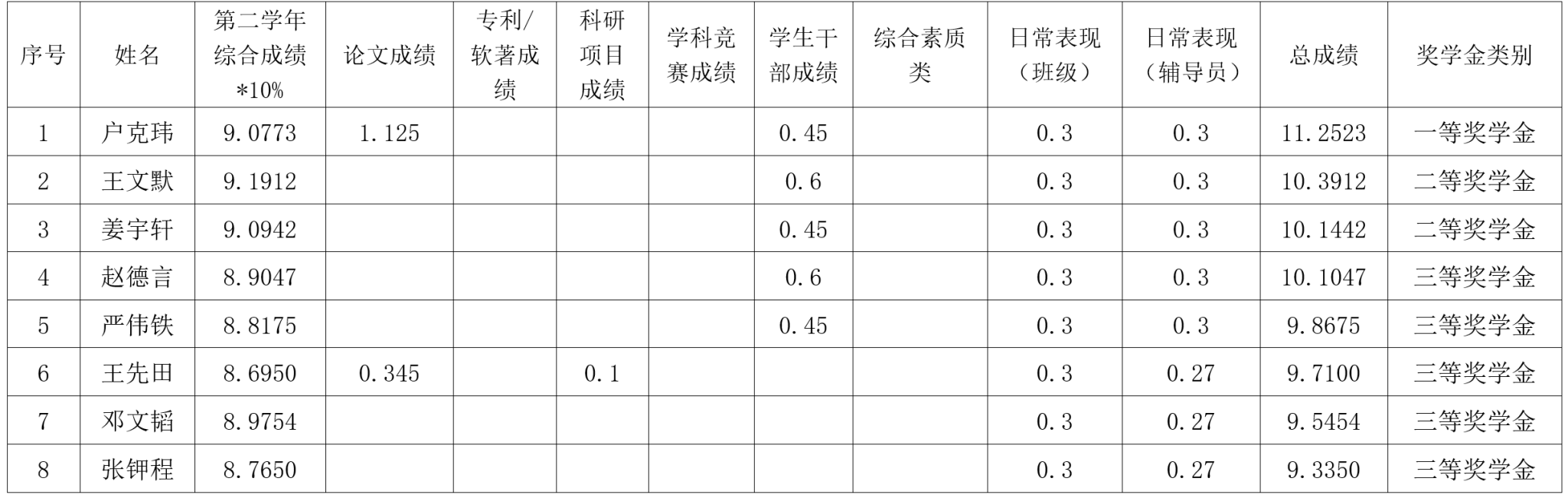 研究生奖(助)学金评定办法》,按综合成绩排名确定最终获奖类别(综合成绩=学业成果成绩+思想道德素质评价成绩+第二学年综合成绩*10%),现将2022级2023-2024学年研究生学业奖学金获奖名单公示如下: