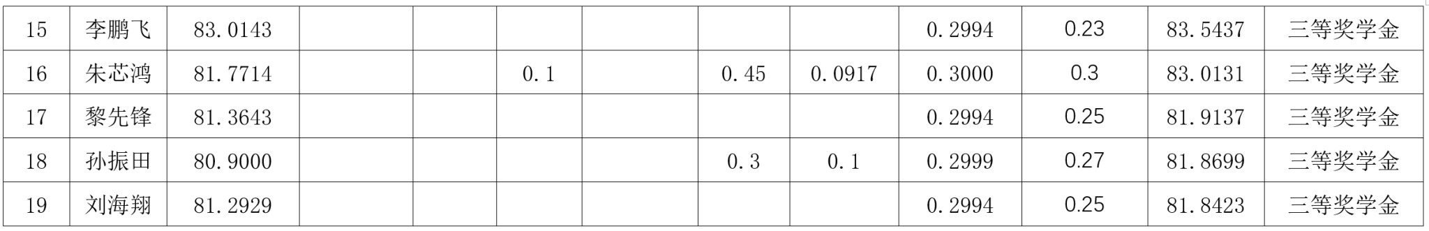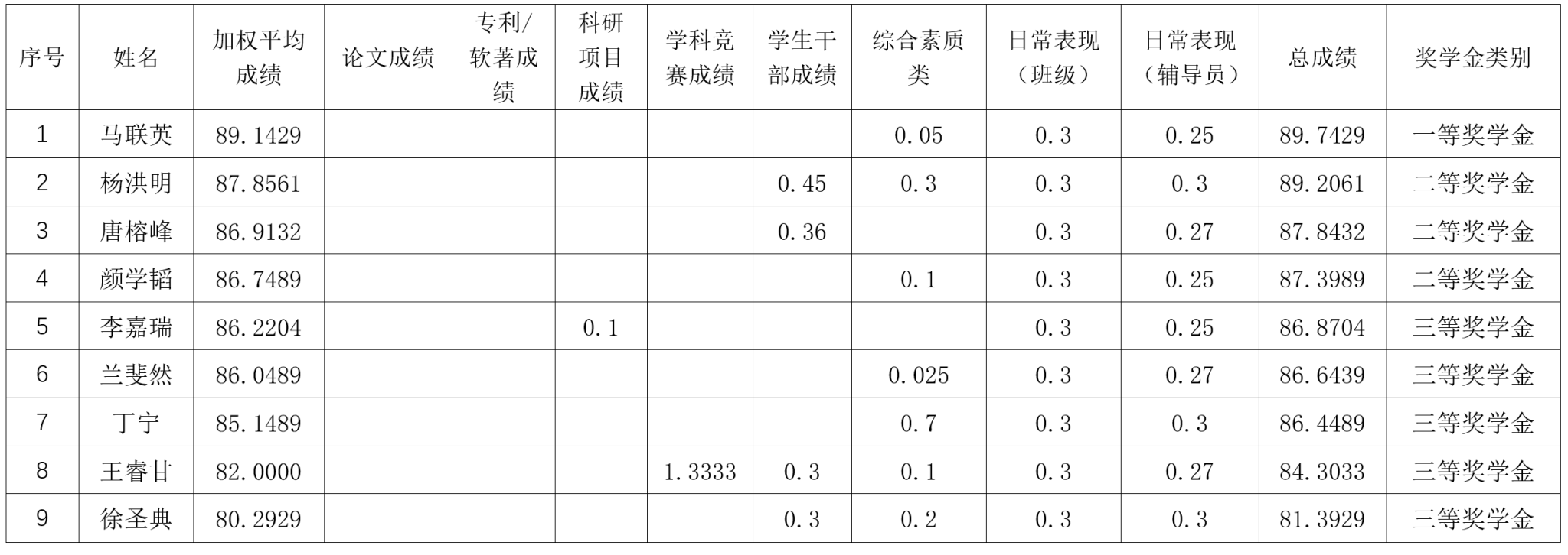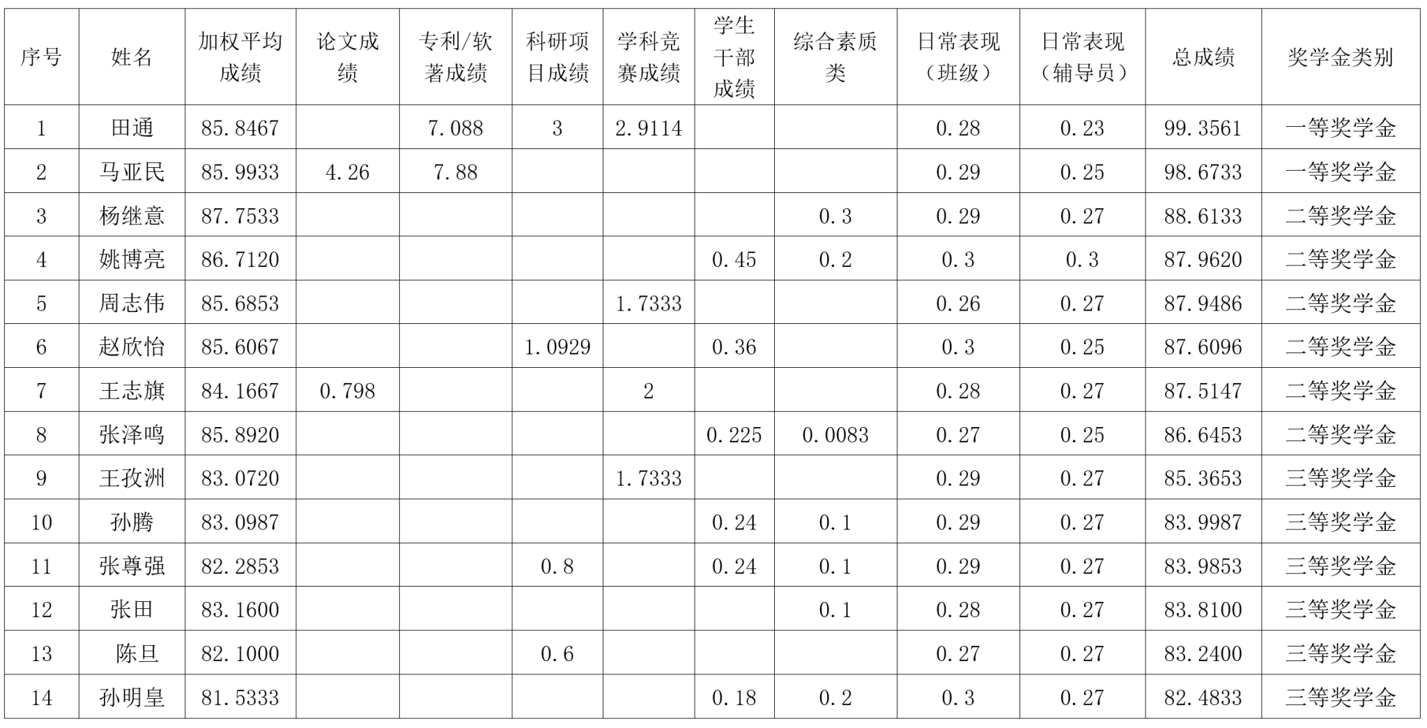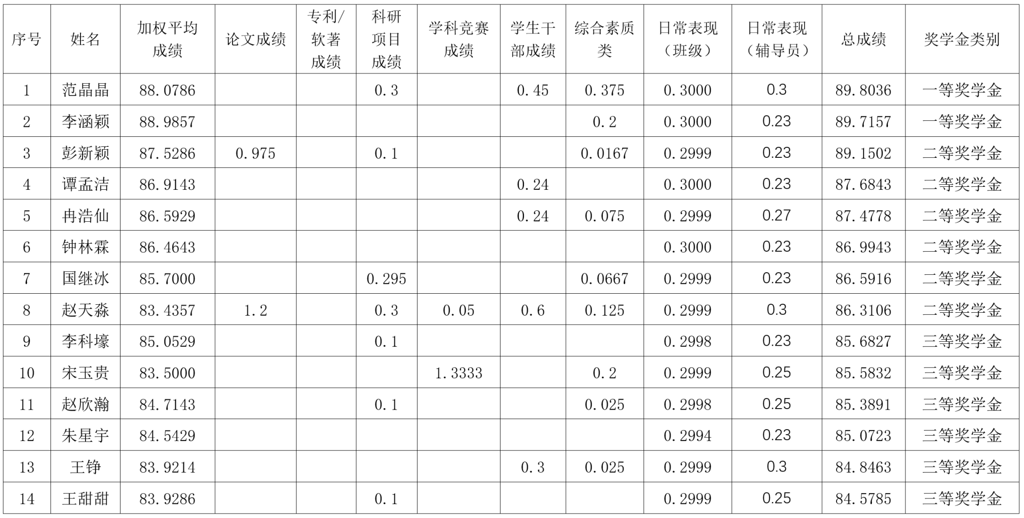 研究生奖(助)学金评定办法》,按综合成绩排名确定最终获奖类别(综合成绩=第一学年课程平均成绩+学业成果成绩+思想道德素质评价成绩),现将2023级2023-2024学年研究生学业奖学金获奖名单公示如下: