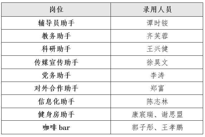 根据《少年阿宾 勤工助学管理办法(试行)》及《少年阿宾 2024-2025学年第二学期勤工助学岗位聘用工作的通知》要求,结合学生申请意愿及岗位任职能力综合考评,拟确定如下勤工助学岗位助手: