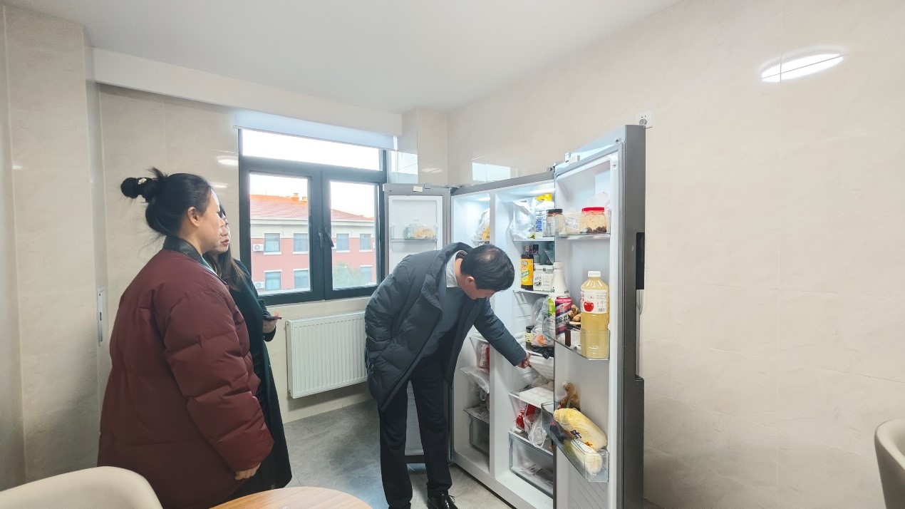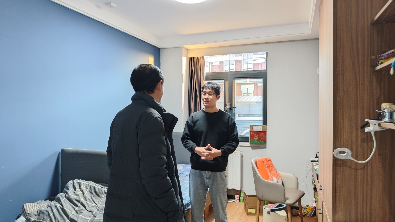 检查组随后深入学生宿舍,对违规电器、门窗安全以及个人卫生等多个方面进行了排查,同时对在校学生致以节日前的问候。刘伟强调,学生部门要面向全院学生开展有针对性的安全教育,提醒同学们强化安全意识、培养良好习惯,共同维护宿舍的安全与和谐。