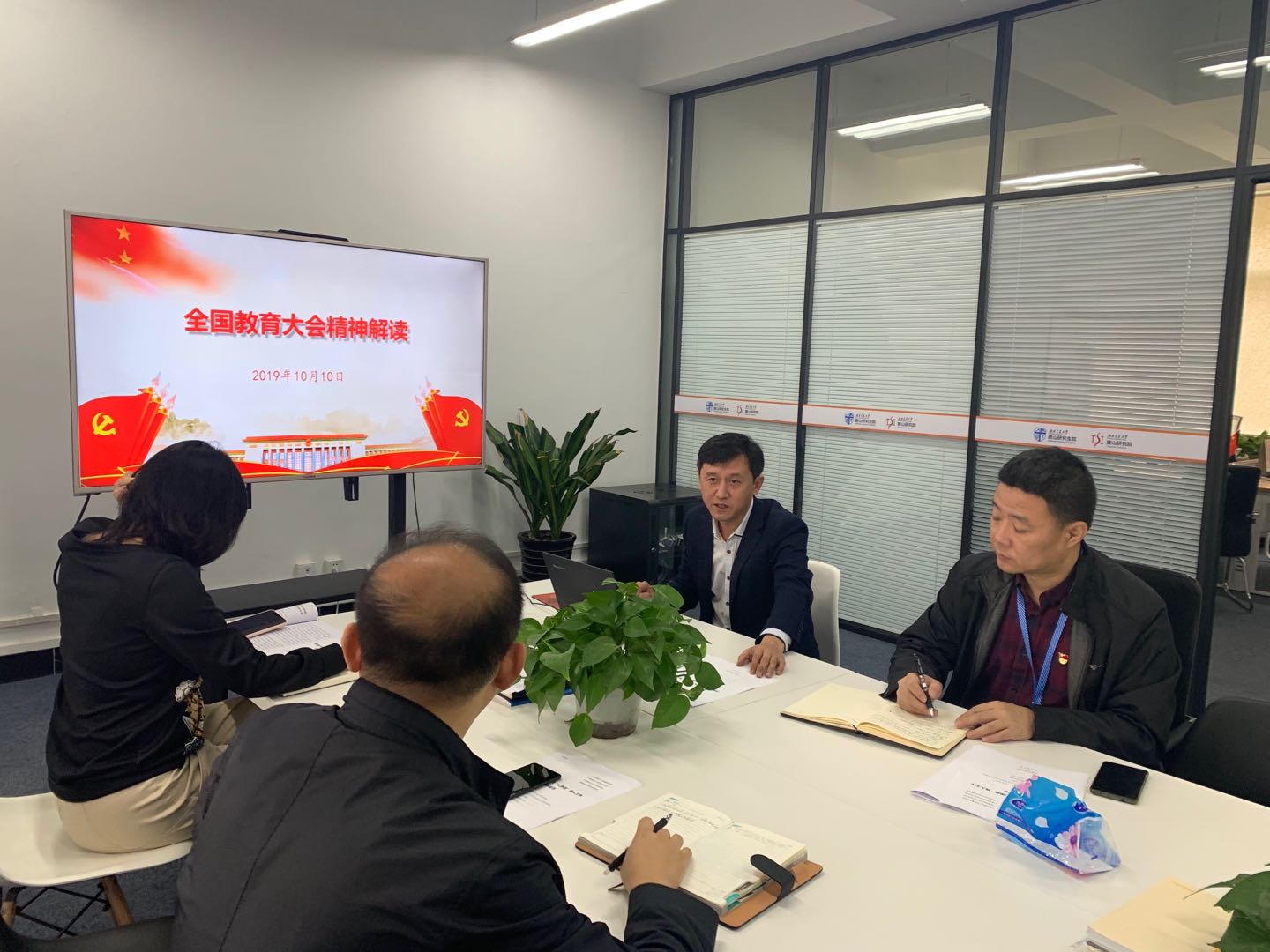 10月9日、10日、11日、12日、14日、15日唐山研究生院领导班子成员在研303办公室进行了为期6天的集中学习研讨。分别学习研讨了习近平总书记关于“不忘初心、牢记使命”重要论述、对教育的重要论述、习近平新时代中国特色社会主义思想、党章、党史和新中国史、时代楷模李保国、陈立群的先进事迹。集体学习后,班子成员分别结合个人实际做了发言,学习效果良好。