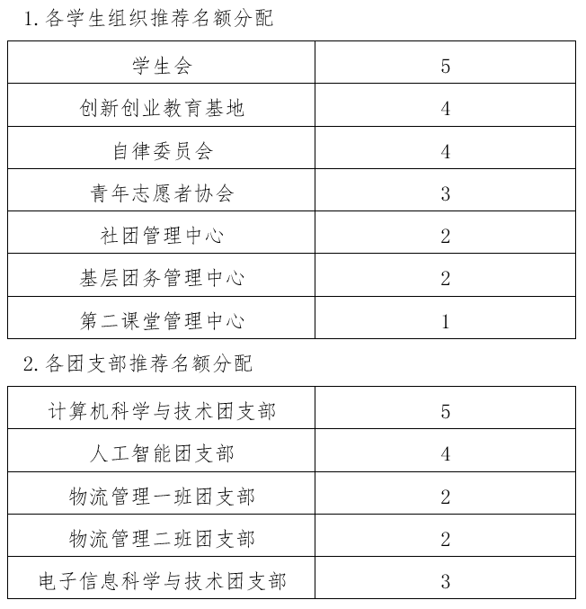 2.各学生组织、团支部按名额择优推荐,附推荐意见(附件1),填写汇总表(附件2),纸质版材料(附件1)于11月17日12点前交至南讲堂214,电子版材料(报名表、汇总表)放入一个文件夹,以压缩包形式发送至[email protected],压缩包和邮件主题均需命名为【团支部(学生组织)全称-青马学员申报】,电子版材料截止时间与纸质版材料提交截止时间一致。
