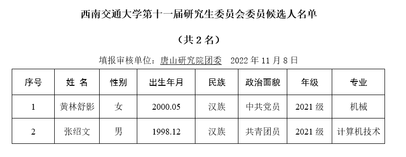 委员候选人名单公示如下: