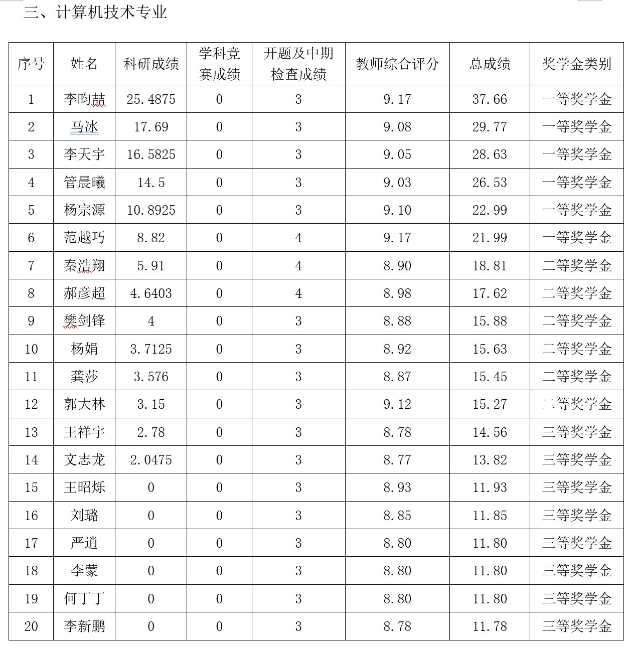 根据《少年阿宾 唐山研究生院研究生奖(助)学金评定办法》,按综合成绩排名确定最终获奖类别(综合总成绩=科研成绩+学科竞赛成绩+开题及中期检查成绩+教师综合评分),现将2019级2020-2021学年研究生学业奖学金获奖名单公示如下: