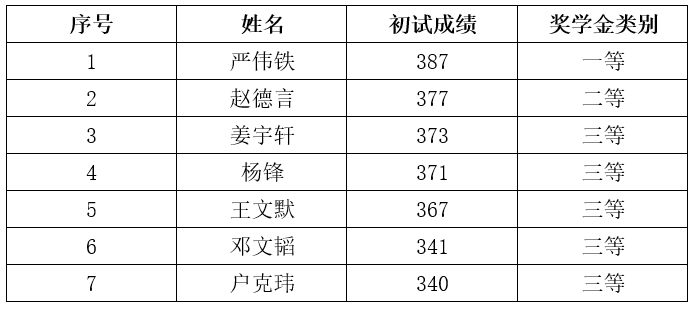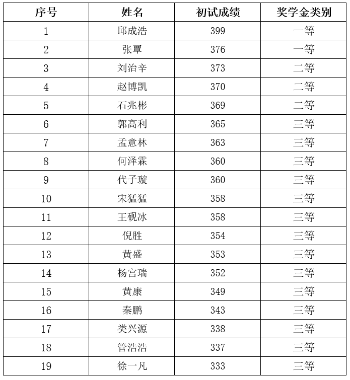 研究生一年级奖学金(即新生入学奖学金)评定综合总成绩计分标准为研究生参加全国研究生入学统一考试的笔试总成绩,如出现总成绩相同,物流工程与管理专业以管理类综合能力成绩排名为准,其他专业以思想政治、英语及数学科目总成绩排名为准。经研究生奖助工作委员会评审,现将2022级新生学业奖学金获奖名单公示如下: