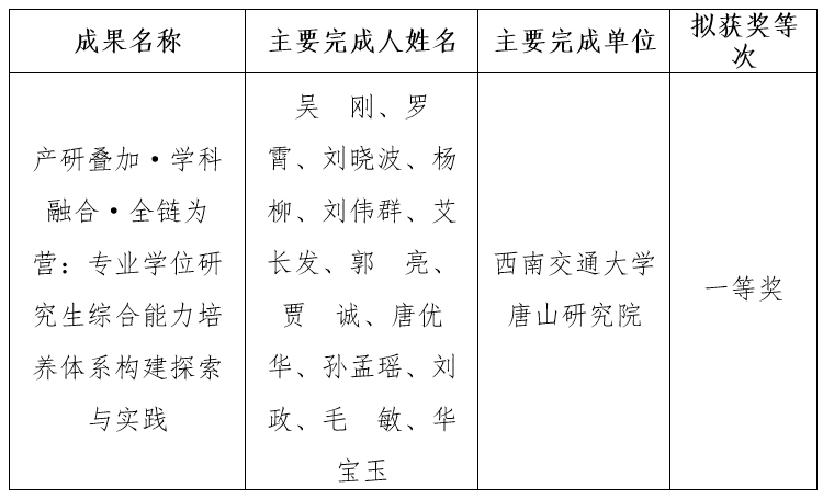 近日,省教育厅向我单位反馈了2025年河北省高等教育(研究生)教学成果奖拟获奖项目。我单位推荐的项目共入选1项,其中一等奖1项。