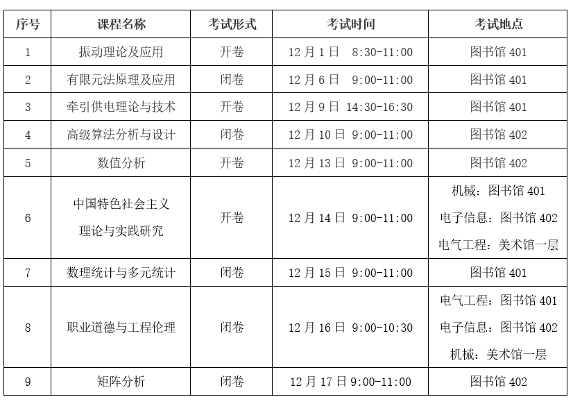2021-2022学年第一学期研究生期末考试具体安排详见下表。